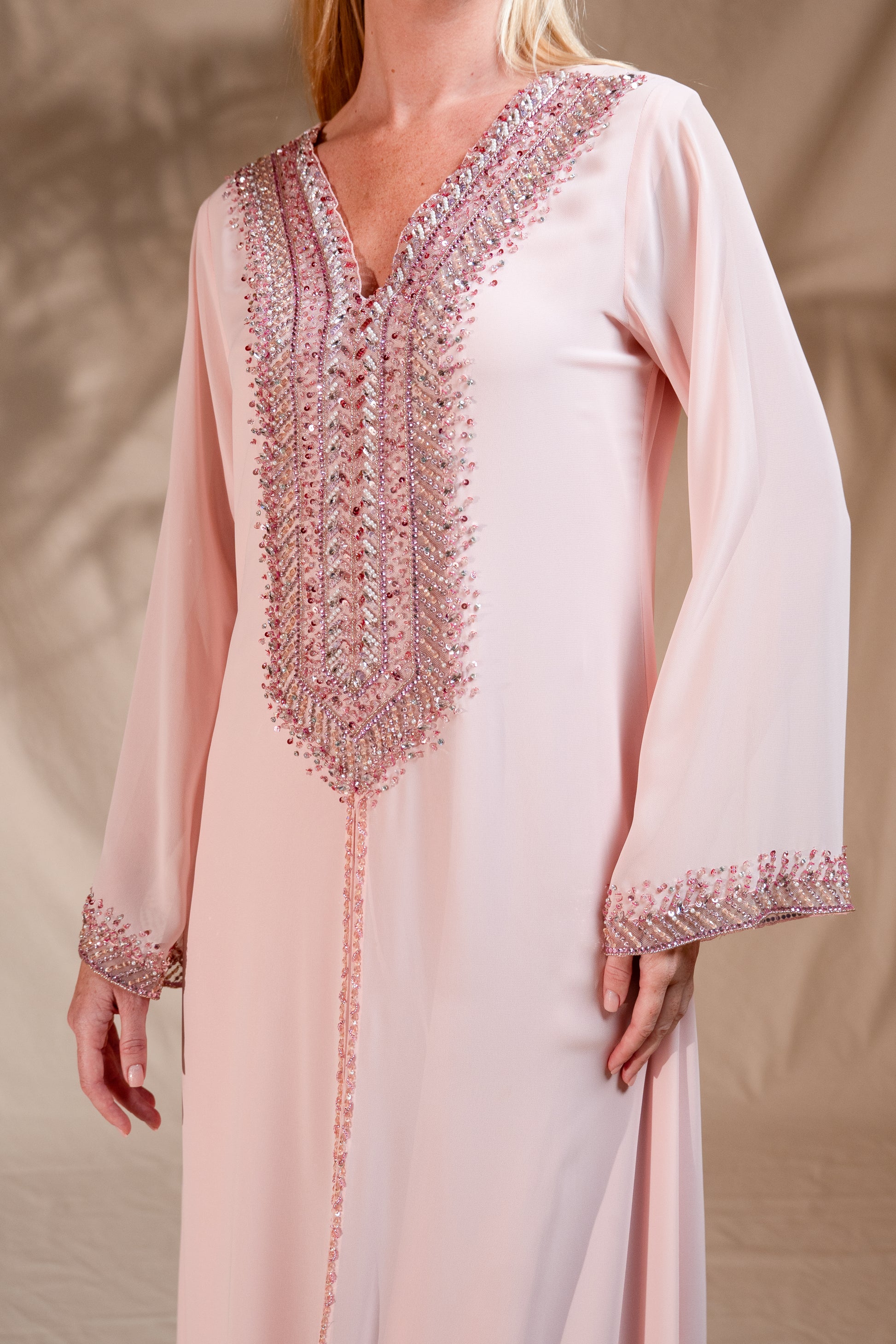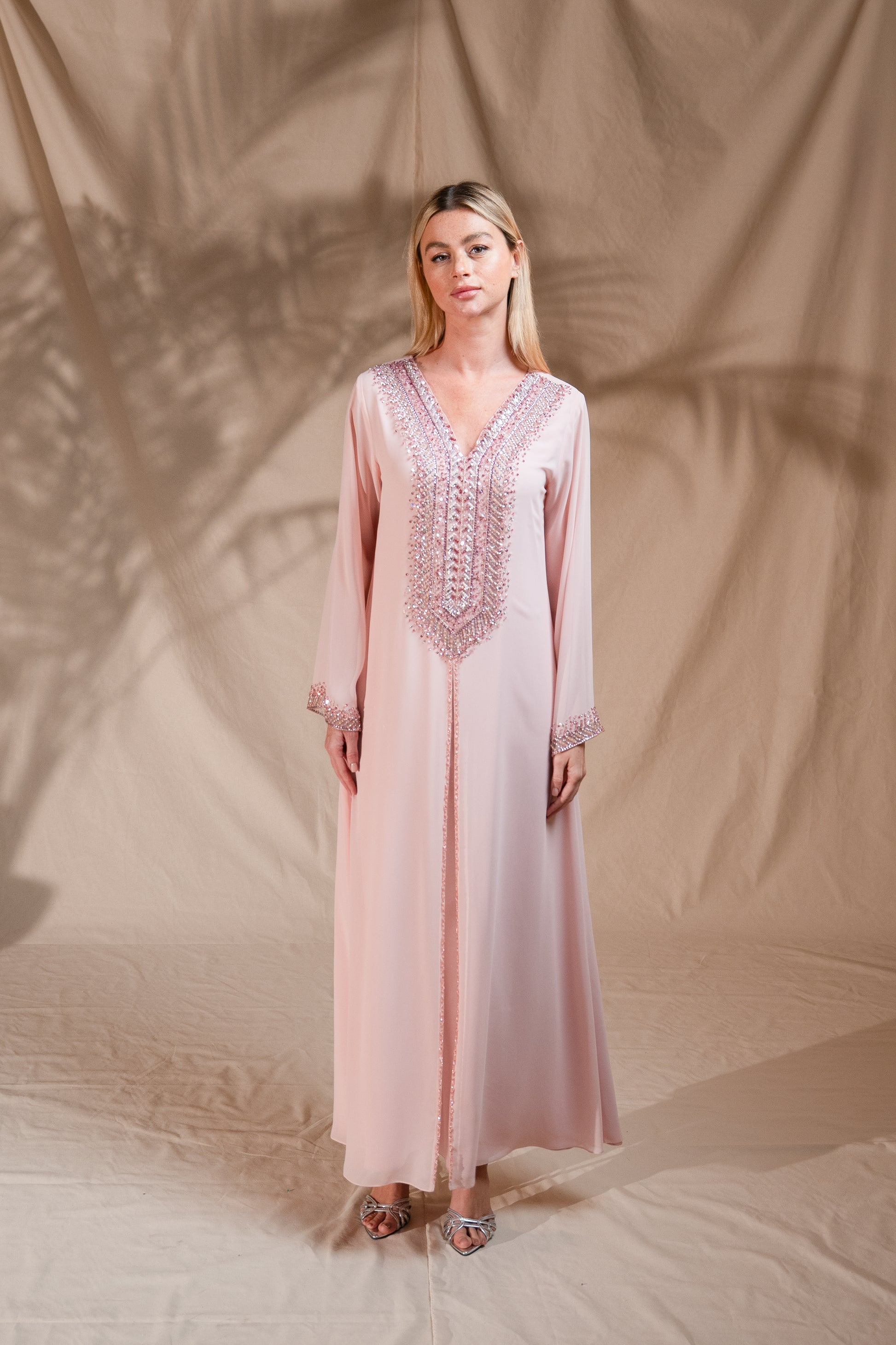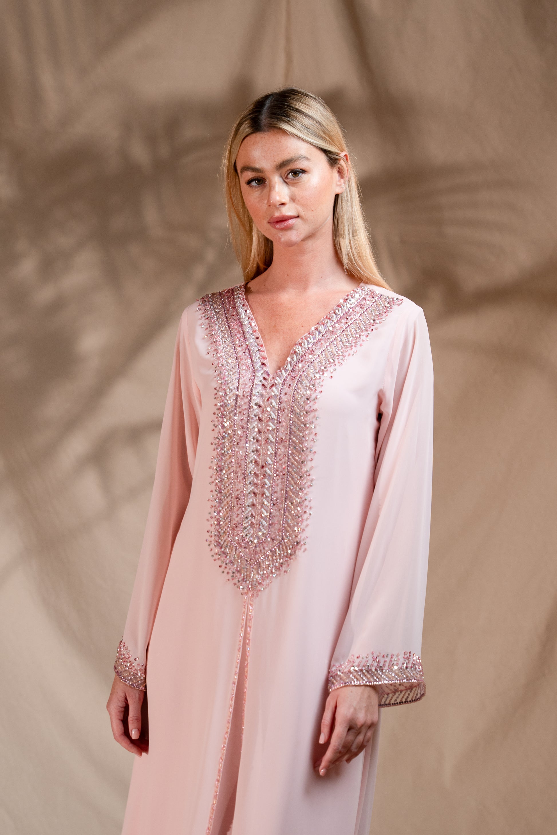 Soft,flowy featuring intricate handcrafted details.