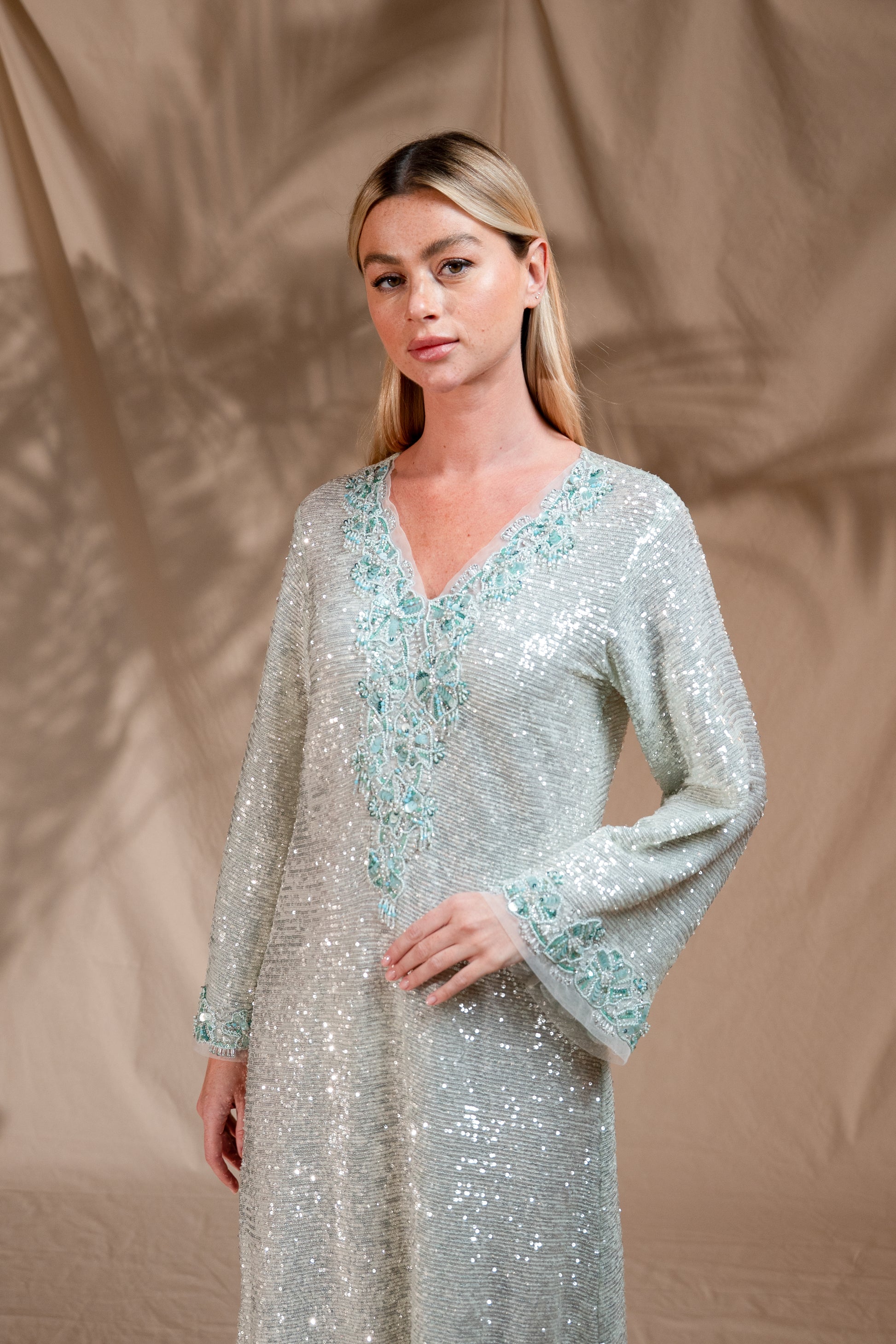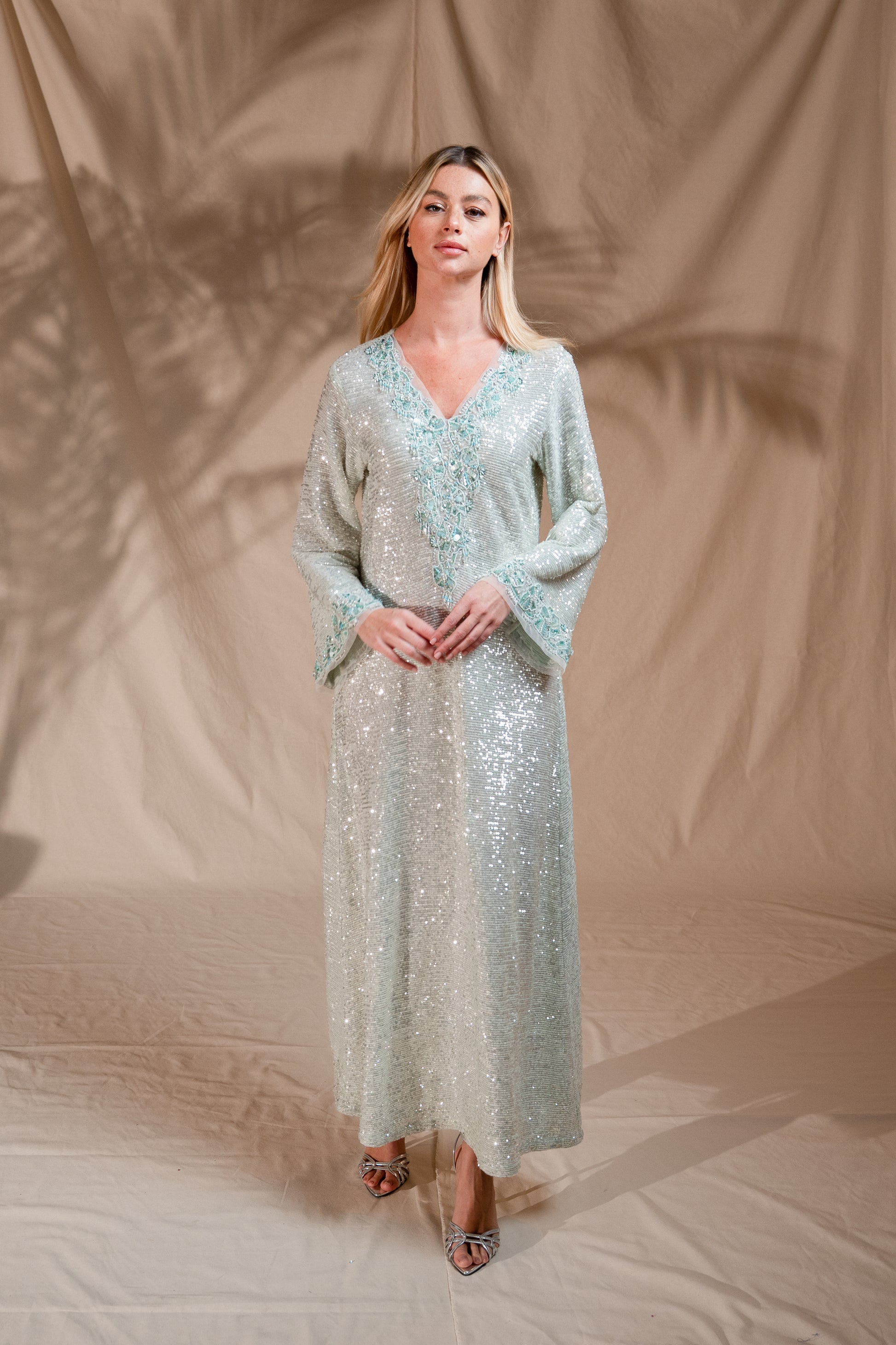 Premium barcelona fabric with delicate handwork for elegant finish.